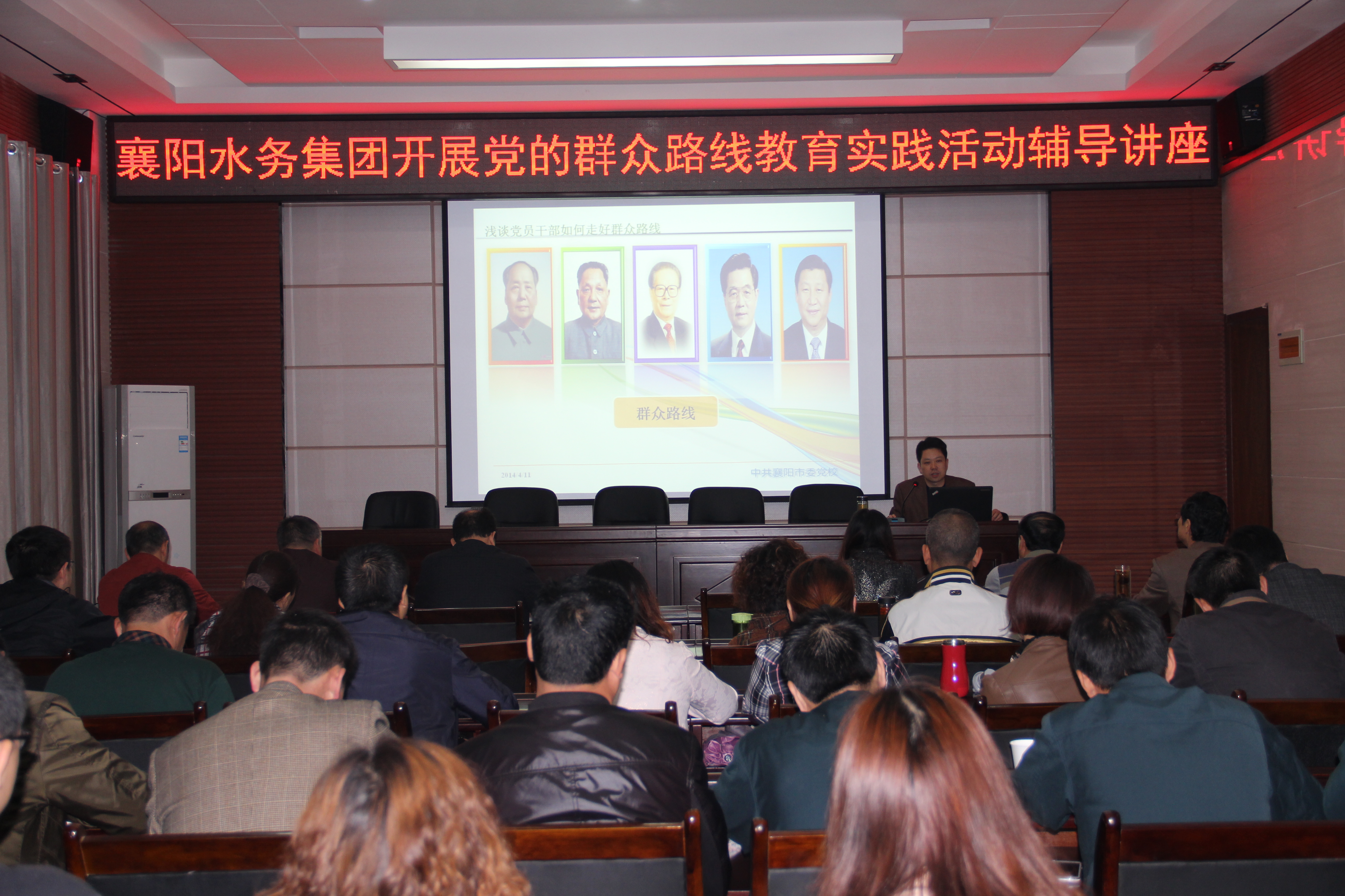 4月11日上午,襄陽水務(wù)集團(tuán)有限公司邀請市委黨校常務(wù)副校長黃進(jìn)教授為公司黨員干部做群眾路線教育專題輔導(dǎo)。黃校長精心準(zhǔn)備了題為《淺談黨員干部如何走好群眾路線》的講座。他從堅持黨的群眾路線的重要內(nèi)涵、當(dāng)前堅持群眾路線的異常急迫性和如何踐行群眾路線三個方面對開展黨的群眾路線教育實踐活動的重要性進(jìn)行了詳細(xì)的闡述。黃校長的講座內(nèi)容精彩豐富,圖文并茂,通過一個個典型生動的例子,讓每一個在場的干部職工都了解到了黨的群眾路線教育實踐活動“是什么”“為什么”和“怎么做”。通過此次講座,公司黨員干部對群眾路線教育實踐活動有了更加深刻的認(rèn)識和理解,增強(qiáng)了為群眾服務(wù)的自覺性。